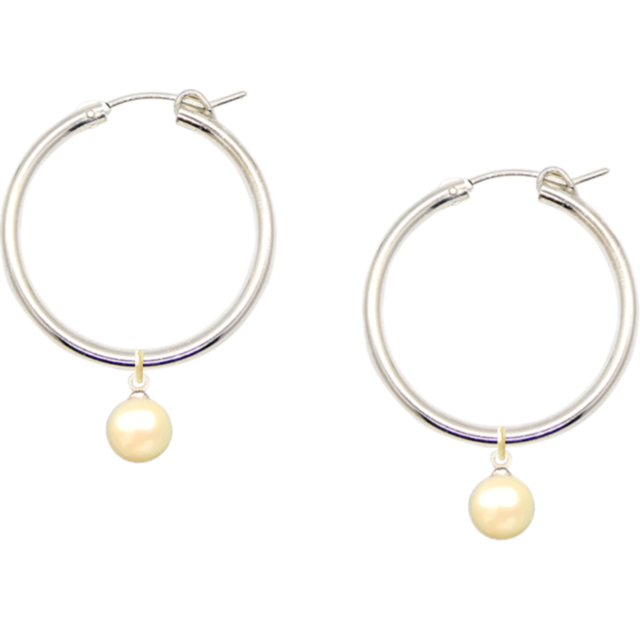 上質なシルバー925を使用したNuv.フープピアス。本真珠をあしらったこのピアスは、ユニセックスデザインで性別問わずお楽しみいただけます。